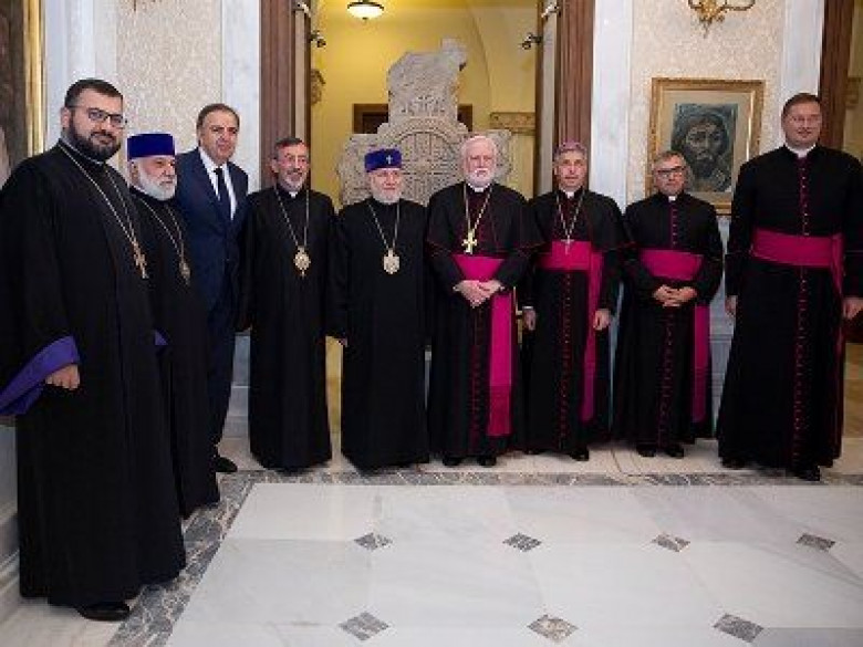 Մայր Աթոռ Սուրբ Էջմիածին այցի առիթով Ամենայն Հայոց Կաթողիկոսն իր բարեմաղթանքն ու գնահատանքը բերեց պատվիրակության անդամներին՝ անդրադառնալով Վատիկանի և Հայաստանի Հանարապետության միջև ձևավորված ջերմ կապերին ու գործակցությանը: Ամենայն Հայոց Կաթողիկոսն ուրախությամբ արձանագրեց, որ իր գահակալության շրջանին Հայոց Եկեղեցու և Հռոմի Կաթոլիկ Եկեղեցու միջև հարաբերություններն առավել ջերմացել են ու զորացել: Այս կապակցությամբ Նորին Սրբությունը գոհունակությամբ անդրադարձավ Հռոմի Հովհաննես-Պողոս Բ և Ֆրանցիսկոս Սրբազան Քահանայապետերի այցելություններին Հայաստան: