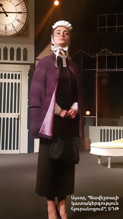 -«Զավեշտալի կատակերգություն հյուրանոցում» ներկայացման մեջ ներմուծվել եմ Լուսինե Հարությունյանի փոխարեն՝ քույր Ֆոսթերի կերպարով: Այս ներկայացումն ինձ հնարավորություն է տալիս խաղալու Արթուր Ութմազյանի ու այլ լավ դերասանների հետ, որոնք ինձ տալիս են շատ մեծ փորձ: Թատրոնում բախտս բերել է: Այն, ինչ ես կամ, մեծ մասամբ, իմ գործընկերների, ընկերների շնորհիվ է: Մարդն այդպես է ձևավորվում:
