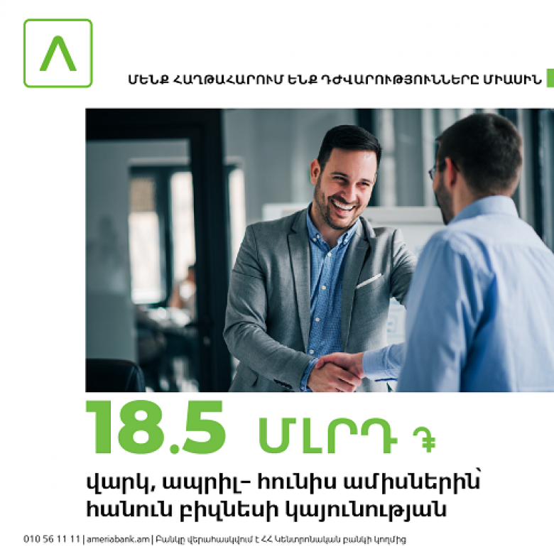 Ամերիաբանկ․ ավելի քան 18.5 մլրդ ՀՀ դրամ արտոնյալ վարկ՝ բիզնեսի աջակցության նպատակով