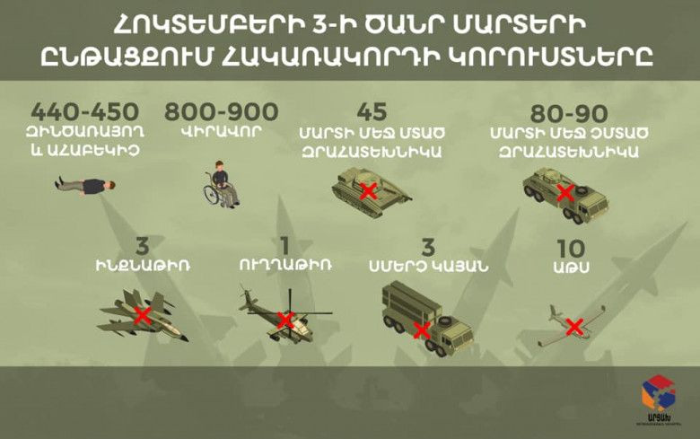 Հոկտեմբերի 3-ի ծանր մարտերի ընթացքում հակառակորդի կորուստները