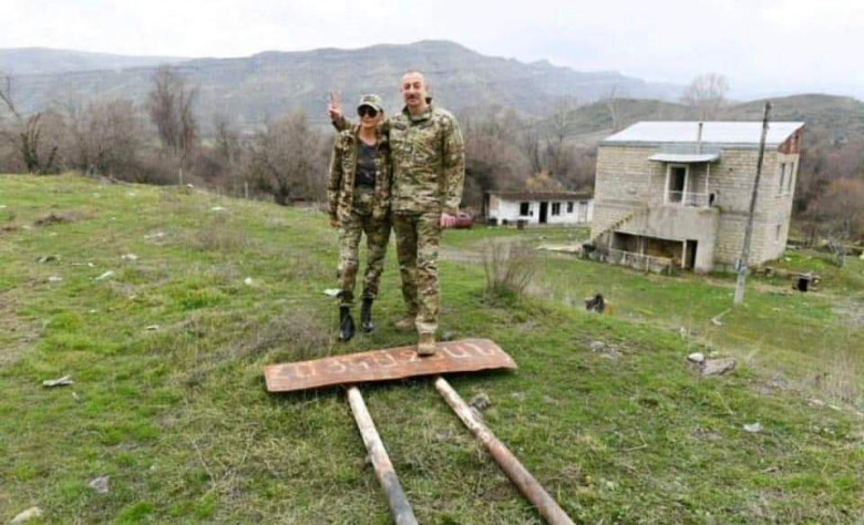 Ադրբեջանի նախագահ Իլհամ Ալիևն Արցախում ոտնատակ է տալիս հայկական բնակավայրերի ցուցանակները: