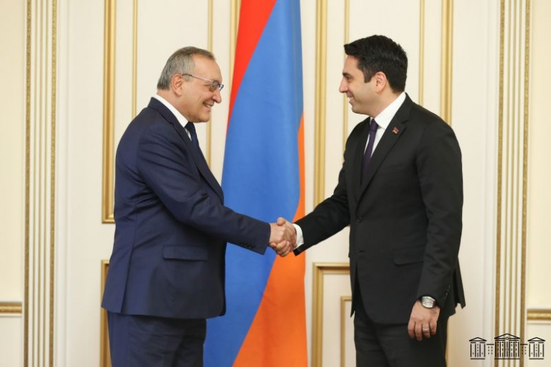 Ողջույնի խոսքում ՀՀ ԱԺ նախագահը կարեւորեց նոր պաշտոնում Արցախի իր պաշտոնակցի հետ առաջին պաշտոնական հանդիպումն անցկացնելու փաստը: Ալեն Սիմոնյանը նշեց, որ հայկական զույգ պետությունների միջեւ միասնականությունը հիմնարար արժեք է, որի պահպանումը պետք է մշտապես տեղ գտնի պետական եւ հանրային ռազմավարական ծրագրերում: ՀՀ ԱԺ նախագահը նաեւ հույս հայտնեց, որ երկու խորհրդարանները կշարունակեն արդյունավետ համագործակցել, ինչպես նաեւ, անհրաժեշտության դեպքում, կվերանայվեն փոխգործակցության նախկին պայմանավորվածությունները: