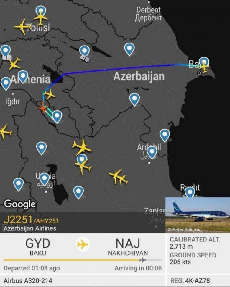 Բաքու-Նախիջևան երթուղով Հայաստանի տարածքով թռիչք է իրականացրել ինչ-որ, ենթադրաբար, քաղաքացիական օդանավ (ենթադրաբար՝ այն իմաստով, որ Հայաստանում ոչ ոք չգիտի, թե ինչ կա օդանավի ներսում)։ Նույն օրը նաև ինչ-որ ադրբեջանական քաղաքացիական ինքնաթիռ է թռել իրանական տարածքով։ Դա Հ1-ի Պետրոս Ղազարյանի վկայությամբ, որի խոսքերի ճշմարտացության մեջ ոչ մի կասկած չկա Հայաստանի ցանկացած «հպարտ քաղաքացու» համար։