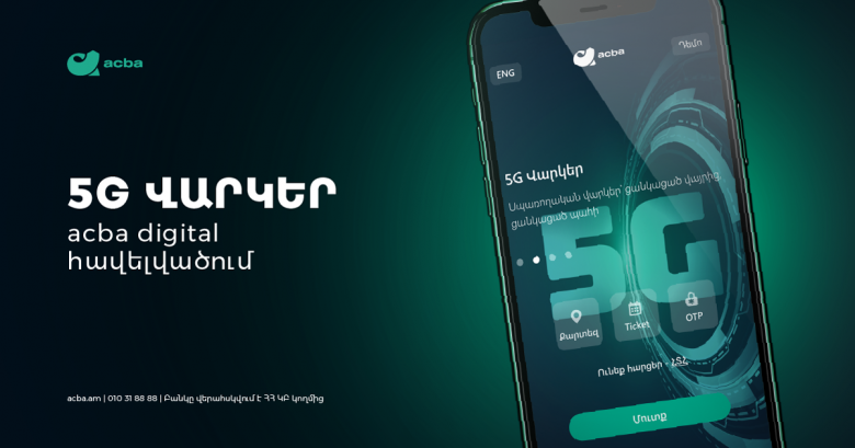 ՏնտեսությունԱկբա բանկն իր acba digital հարթակի միջոցով մեկնարկել է 5G վարկերի տրամադրումը: