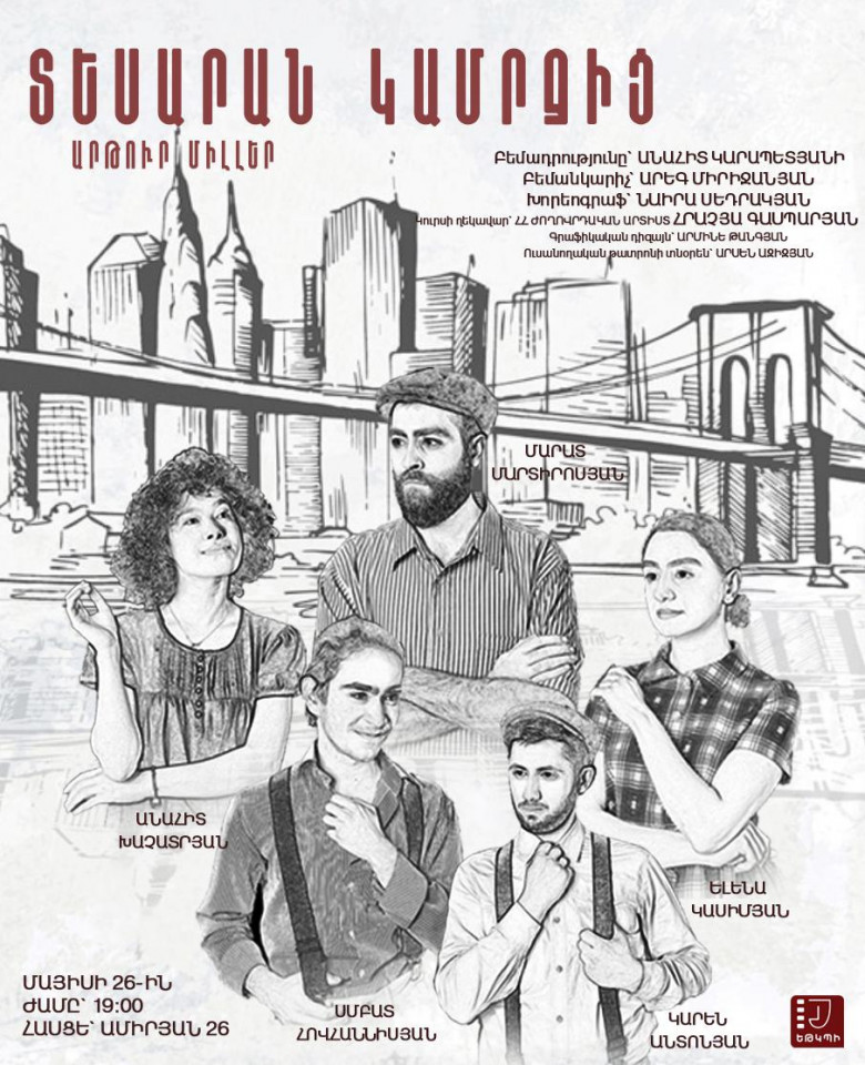 Դերասանական կազմում ընդգրկված են Անահիտ Խաչատրյանը, Մարատ Մարտիրոսյանը, Ելենա Կասիմյանը, Կարեն Անտոնյանը, Սմբատ Հովհաննիսյանը: Անահիտն ասում է՝ բեմադրության հիմքում իր ապրումներն են, զգացողությունները, ազատության մասին իր վերաբերմունքն ու կարծիքը: «Իրադարձությունները տեղի են ունենում 1950-ական թթ. հետպատերազմյան Ամերիկայում: Փորձել ենք պահպանել իրենց ժամանակաշրջանի ոճային առանձնահատկությունները՝ իհարկե, տալով մեր օրերի լուծումներ: Երկրորդ համաշխարհային պատերազմից հետո կյանքն Ամերիկայում բավականին դժվար է եղել, միգրանտների մեծ հոսք:Ինչ-որ առումով ասոցացնում եմ մեր երկրի հետ՝ հետպատերազմյան ժամանակաշրջան է, մեր շուրջբոլորը բազում զբոսաշրջիկներ են և մի ժողովուրդ, որը փորձում է գոյատևել, ուղղակի ապրել՝ պաշտպանելով իր ընտանիքը: Մեր գլխավոր հերոսն էլ է փորձում, անկախ ամեն ինչից, պաշտպանել իր կնոջն ու աղջկան: Իրեն սխալ են հասկանում, չեն կարողանում ընդունել այն արգելքները, որոնք նա դնում է իր ընտանիքի առջև: Այն ազատությունը, որ ուզում են երիտասարդները, չեն հասկանում մեծերը: Բայց իրականում այդ ազատությունը տանում է ոչ թե հենց ազատություն փնտրողի կործանմանը, այլ նրա կործանմանը, ով չի համակերպվում ազատության հետ: Մարդիկ, որոնք կարծում են, թե բացարձակ ազատ են, հենց նրանք են ամենաանազատը, առաջին սահմանափակումն իրենք են դնում իրենց առաջ: Այս գործը, միտքը շատ այժմեական է»,-«Փաստի» հետ զրույցում ասում է ներկայացման բեմադրող ռեժիսորը:
