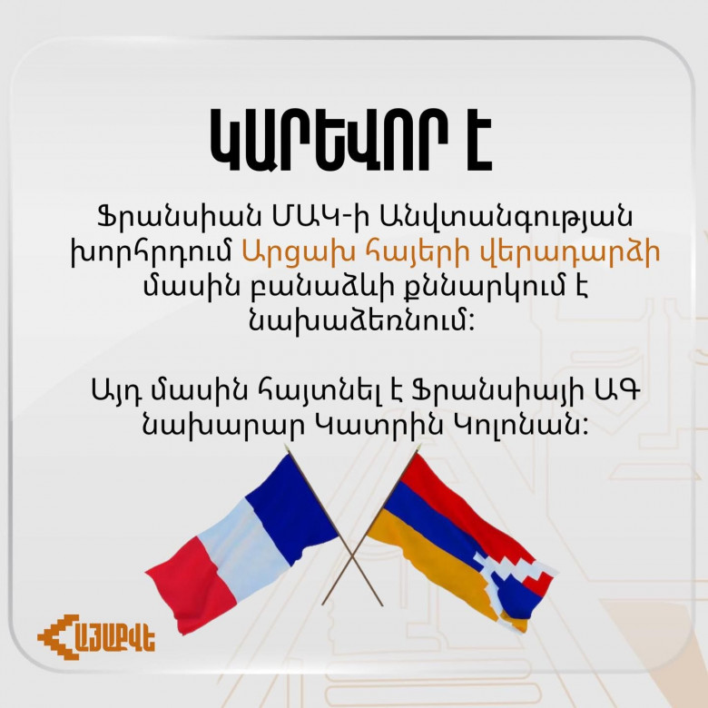Ֆրանսիան կնախաձեռնի արցախահայերի` հայրենիք վերադարձի շուրջ բանաձևի քննարկում ՄԱԿ-ի ԱԽ-ում Բլոգ 12 Հոկտեմբեր, 2023 15:17 Կիսվել Կիսվել