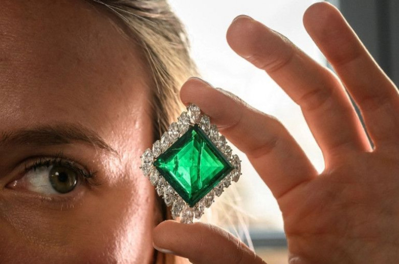 Զմրուխը տեղադրված է Cartier ապրանքանիշի ադամանդե և զմրուխտե կրծքազարդի մեջ, գրում է luxurylaunches.com-ը: