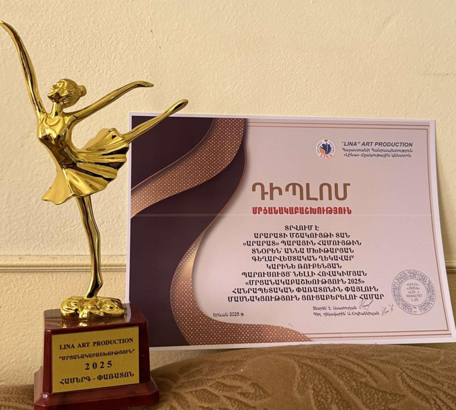 Տարվա ամփոփիչ «Մրցանակաբաշխություն 2025»-ի շրջանակում Լինա մշակութային կենտրոնը «Արարատ» համույթին պարգևատրեց պարուհու արձանիկով և դիպլոմով, ինչը մեծ խթան էր երիտասարդ պարողների համար։