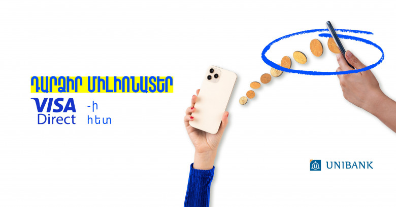 Visa Direct ծառայությունը Յունիբանկի հաճախորդներին հնարավորություն է տալիս արագ և հարմար ձևով իրենց Visa քարտից կատարել փոխանցում աշխարհի 60-ից ավելի երկրների բանկերի կողմից թողարկված Visa քարտերին: Փոխանցումն իրականացվում է հաշված րոպեների ընթացքում՝ հաճախորդին հարմար ցանկացած պահի: UNIMobile հավելվածով փոխանցում իրականացնելու համար հարկավոր է ընտրել «Փոխանցում այլ քարտին», նշել ստացողի քարտի համարը, փոխանցվող գումարի չափն ու արժույթը: