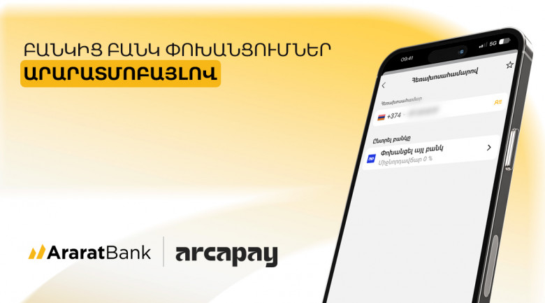 ԱրարատԲանկը միացել է ArcaPay-ին փոխանցումների 0% միջնորդավճարով