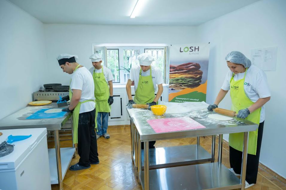 Հասարակություն«Արվեստարան» կրթամշակութային կենտրոնում հատուկ խնամքի կարիք ունեցող չորս երիտասարդ արդեն մի քանի ամիս ակտիվ ներգրավված է «Լոշիկ» սոցիալական ձեռնարկատիրական ծրագրում։ Ծրագրի շնորհիվ նրանք պատրաստում են լոշեր, նրբաբլիթներ, չորահացեր ու լանչ բոքսեր, որոնք հետագայում վաճառվում են սուպերմարկետներում և սրճարաններում` աշխատանքով ապահովելով ոչ միայն երիտասարդներին, այլև նրանց ծնողներին։