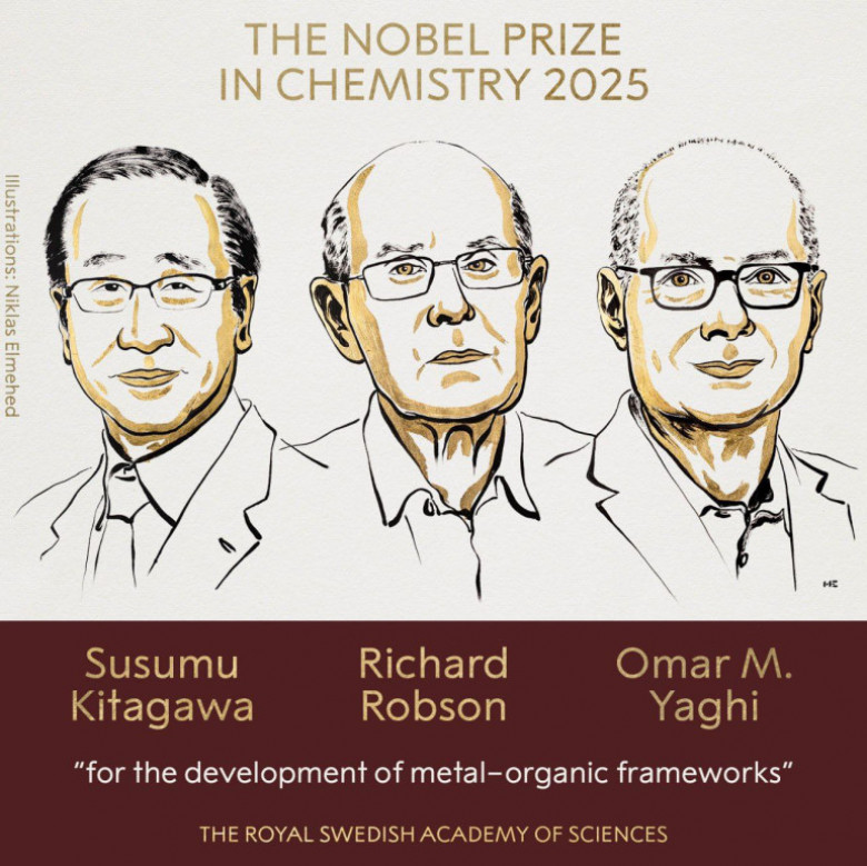Շվեդիայի գիտությունների թագավորական ակադեմիան քիմիայի բնագավառում 2025 թվականի Նոբելյան մրցանակը շնորհել է Շուշումու Կիտագավային (Ճապոնիա), Ռիչարդ Ռոբսոնին (Ավստրալիա) և Օմար Յաղիին (ԱՄՆ)՝ «մետաղաօրգանական կաղապարների մշակման համար»: «Արմենպրես»-ի փոխանցմամբ՝ այս մասին հաղորդագրություն է տարածել Նոբելյան հանձնաժողովը։