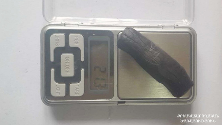 Խուզարկության արդյունքում վերջինիս մոտից հայտնաբերվել է փաթեթ, որում առկա է եղել առանձնապես խոշոր չափի՝ 21,3 գրամ քաշով, ափիոն տեսակի թմրամիջոցին նմանվող, սև զանգված։