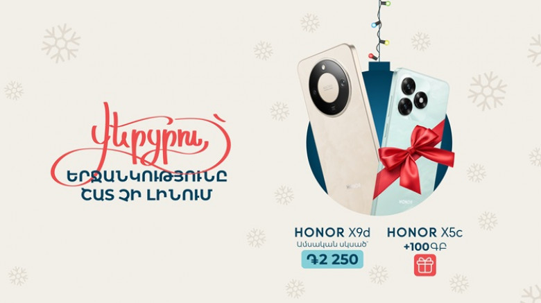 Այսպիսով, մինչև 2026 թվականի հունվարի 31-ը ներառյալ 2025-ի արտադրության Honor X9d սմարթֆոն գնելու դեպքում հաճախորդները կստանան նաև երկրորդ սմարթֆոն՝ Honor X5c: