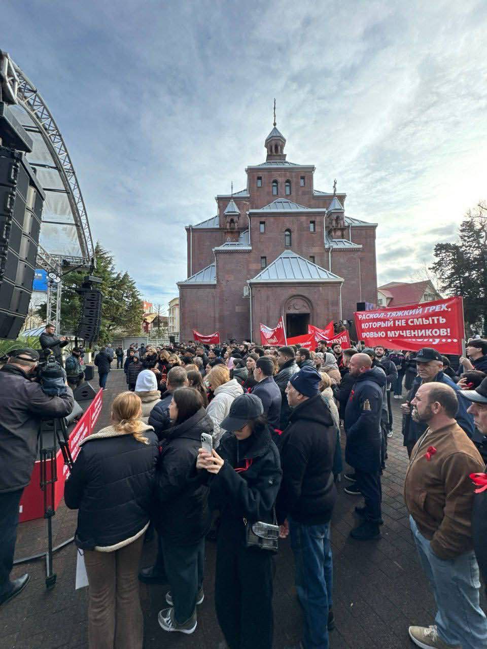Հունվարի քսանհինգին Սոչիում և Ադլերում տեղի են ունեցել «Մենք Էջմիածնի հետ ենք» կարգախոսով զանգվածային հանրահավաքներ՝ ի պաշտպանություն Ամենայն Հայոց Կաթողիկոսի և Հայ առաքելական եկեղեցու միասնության։ Ադլերի Սուրբ Սարգիս հայկական եկեղեցու տարածքում հավաքվել է մեկուկես հազարից ավելի մարդ։ Մասնակիցները համերաշխ վանկարկել են «Ոչ պառակտմանը», «Եկեղեցու միասնությունը ժողովրդի միասնությունն է», «Եկեղեցին և ժողովուրդը միասնական են», «Մեր Կաթողիկոսը Գարեգին Երկրորդն է» կարգախոսները՝ ընդգծելով, որ եկեղեցու դեմ ուղղված ցանկացած քայլ ընկալվում է որպես հարված ամբողջ ազգին։