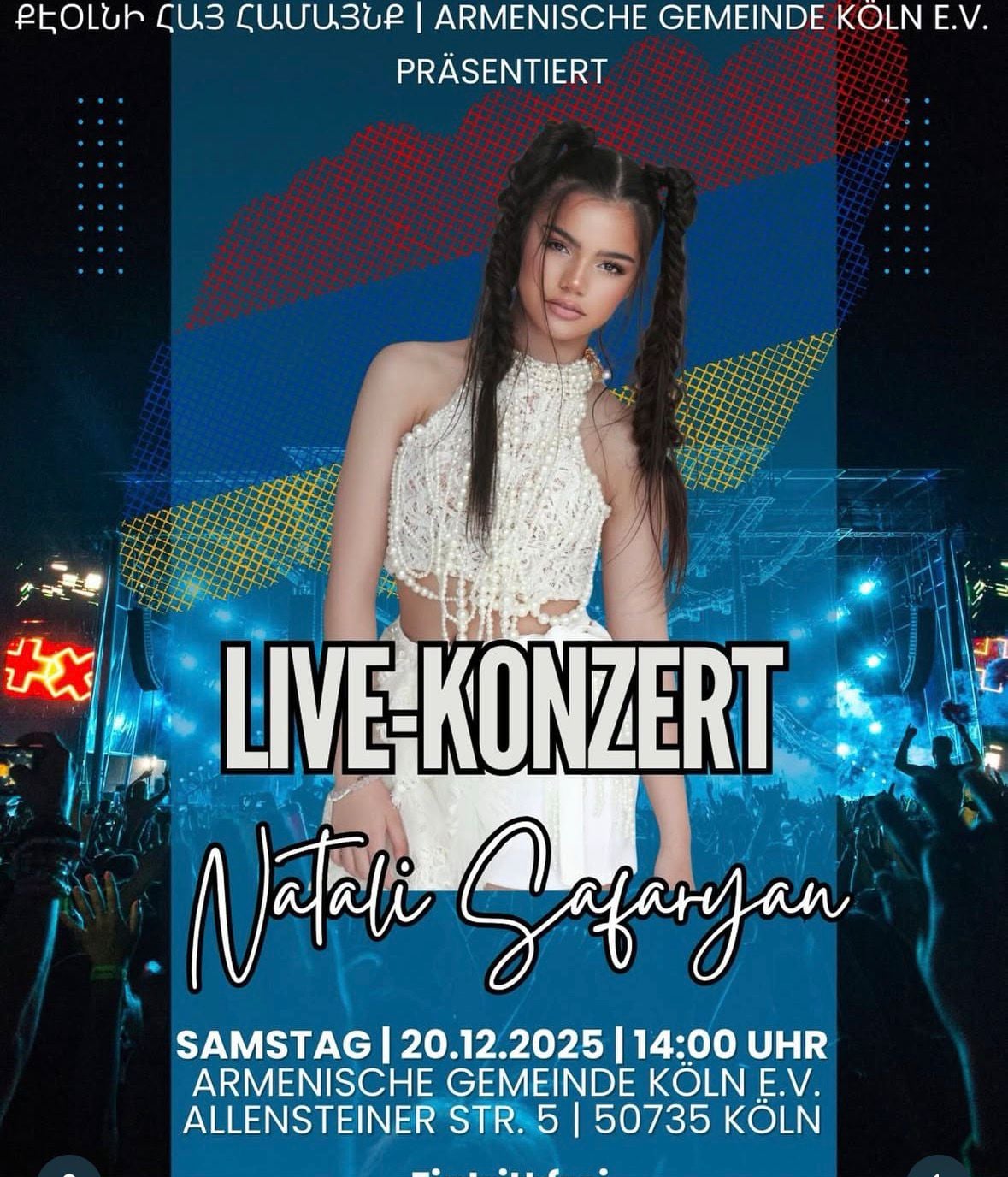 2025 թվականի դեկտեմբերի 20-ին Գերմանիայի Դաշնության Քյոլն քաղաքում տեղի ունեցավ պատանի երգչուհի Նատալի Սաֆարյանի մենահամերգը՝ Քյոլնի հայկական համայնքի և Հայ առաքելական եկեղեցու առաջնորդարանի աջակցությամբ։ Սա Նատալիի առաջին մենահամերգն էր հայրենիքի սահմաններից դուրս։ Մինչ այս նա բարեգործական մենահամերգով հանդես էր եկել Տավուշի մարզում։ Նատալին մասնակցել է բազմաթիվ մրցույթների՝ զբաղեցնելով պատվավոր առաջին հորիզոնականները, ուստի պատահական չէր, որ Քյոլնի հայ համայնքը ցանկացել էր հյուրընկալել նրան իր հարկի տակ։