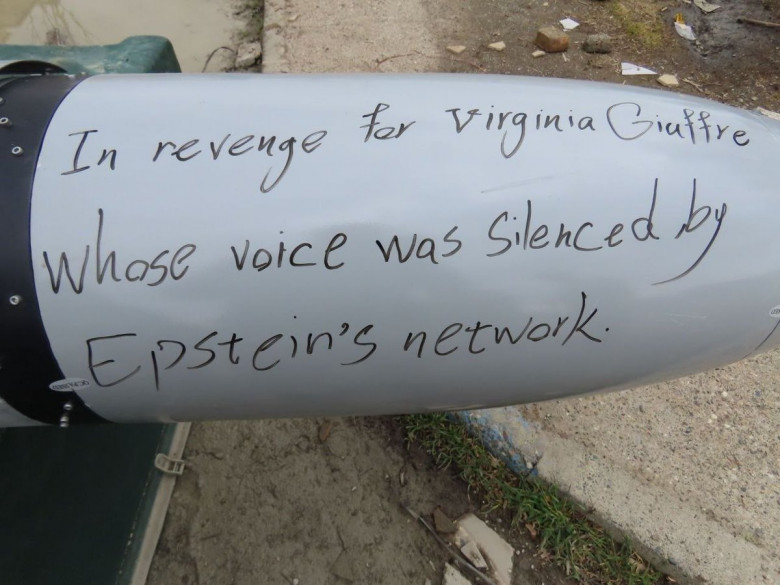 Ինչպես հայտնում է իրանական լրատվամիջոցը, հրթիռի վրայի գրված է եղել՝ «Իրանական հրթիռներն ավելի շատ են պաշտպանում կանանց իրավունքները, քան քաղաքական գործիչներն ու ֆեմինիստական շարժումները։ Վիրջինիա Ջուֆրեի համար, ում ձայնը լռեցրեց Ջեֆրի Էփշտեյնի ցանցը»։