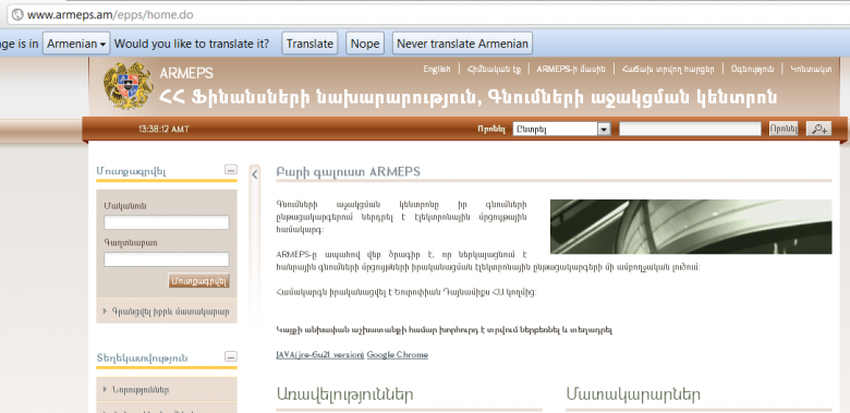 Մասնավորապես` «Գնումների աջակցման կենտրոն» գործակալության պաշտոնական կայքը` http://www.armeps.am/epps/home.do-ը, շարունակում է աշխատել այնպիսի խճճվածությամբ և տեխնոլոգիական հնացած ծրագրերով, ինչպիսին 21-րդ դարի քաղաքացին չի կարող տեսնել նույնիսկ ամենավատ երազում: