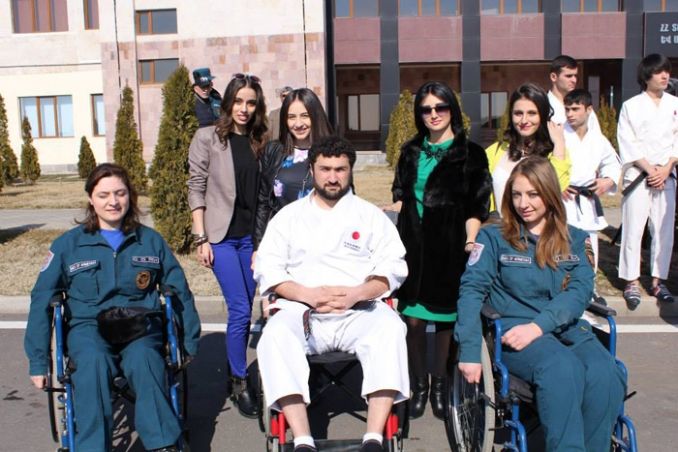 Հայաստանում «JKA» ճապոնական կարատեի ասոցիացիայի գլխավոր մարզիչ Սեւակ Հակոբյանը BRAVO.am-ին հայտնել է, որ առաջին փուլի մարզումներին մասնակցում է հաշմանդամություն ունեցող 13 պատանի եւ 16 չափահաս: Այժմ պատրաստվում են առաջին փուլի փակմանն ու երկրորդ փուլի մեկնարկին.«Երբ մեր ասոցիացիա դիմեցին հաշմանդամություն ունեցող երեխաներ, հասկացանք, որ ադապտացման հետ կապված դժվարություններ ունենք, մինչդեռ միջազգային պրակտիկայում հաշմանդամները ներգրավված են արեւելյան մարտարվեստի ոլորտում: Այս մարզման առանձնահատկությունն այն է, որ ես նույնպես նստում եմ սայլակին, որ բոլորս մեկ հարթության վրա լինենք. եթե մասնակիցների շարժումները սահմանափակ են, իմն էլ այդպես պետք է լինեն»: