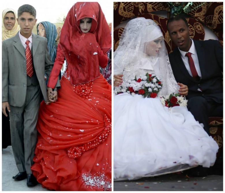 Для официальной церемонии палестинская невеста надевает пышное белое платье, но при это у нее обязательно должно быть еще одно платье, которое вручную вышила для нее мать специально для свадьбы.