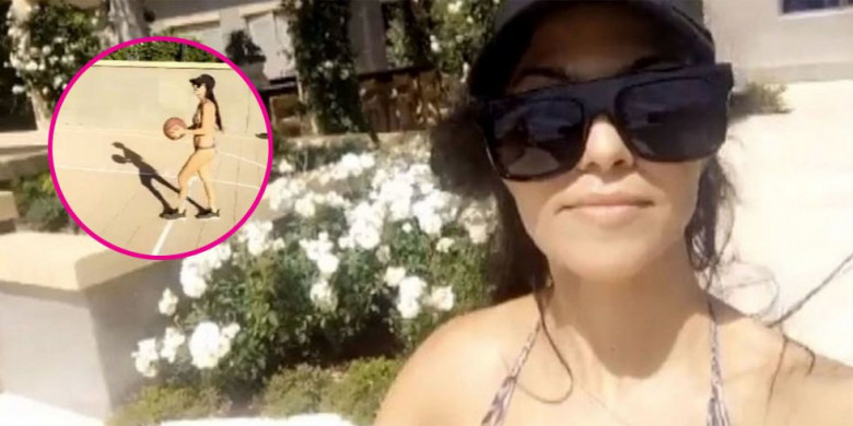 If you ever get told that you can't play basketball while wearing your bikini, remind the person of the time Kourtney Kardashian did it. On Sunday, Kourt proved you can do just about anything while wearing a leopard-print two piece when she hopped on Snapchat to share bits and pieces of her activity-filled day. She played basketball, did some cartwheels on a giant lawn, and took part in what looked like a very extensive selfie taking session with her BFF Sarah Howard.
