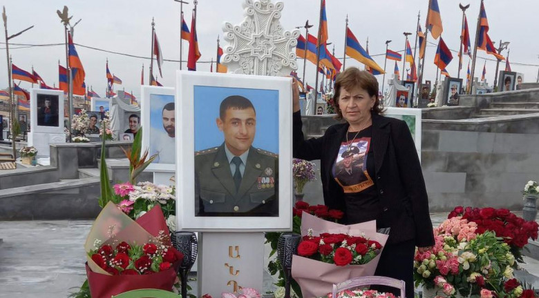 «Պատերազմից առաջ գործերով տեղ էր գնացել, տուն վերադառնալիս, համարյա գյուղ հասած, կանչում են զորամաս, համար մեկ տագնապ է հայտարարված լինում: Մինչև պատերազմը սկսվելը մեզ այդ մասին չէր ասել, անընդհատ զանգում էի՝ ինչի՞ ճանապարհից հետ դարձար, ասաց, որ մի փոքր բան է եղել, լուրջ բան չկա: Մի տեսակ անհանգիստ էի, չէի մտածում, որ պատերազմ կսկսվի, բայց մտածում էի, թե այդ ինչ «փոքր» բան է, որ երեք օր է՝ տուն չի գալիս: Երեք օր հետո սկսվեց պատերազմը: Երեք օր իր հետ չէինք կարողանում կապվել, բոլոր ծանոթներին, ընկերներին զանգում էինք: Երրորդ օրը, երբ ուզում էինք գյուղից դուրս գալ, ընկերներից մեկի համարից զանգեց՝ ինչի՞ եք այդքան զանգում, արձագանքեցի, որ մեր հարսն ուզում է գյուղից դուրս գալ: Այդ ժամանակ իրենց երկրորդ երեխայի ծննդին էինք սպասում: Պատասխանեց՝ իմաստը ո՞րն է. կարծում եմ՝ մտածում էր, թե Ապրիլ յանի նման մի քանի օր է տևելու պատերազմը: Ես մնացի, ավելի ուշ դուրս եկա գյուղից՝ հոկտեմբերի 5-ին: Այդ ժամանակ բան չասաց, հակառակը՝ մնում ես, որ ի՞նչ անես»: