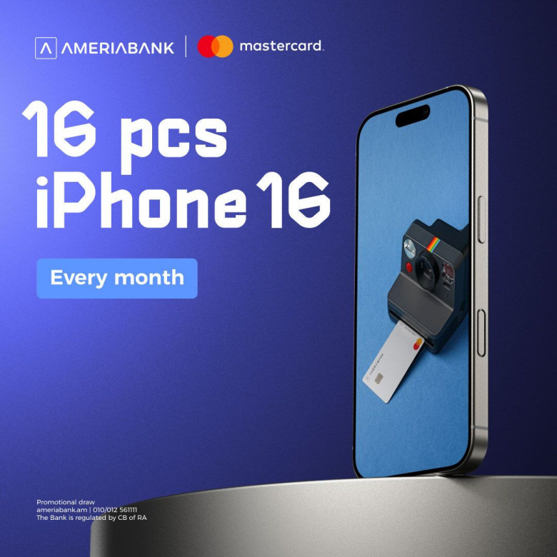 Under the terms of the campaign clients who order and activate a new Mastercard from Ameriabank, will participate in a draw and will have the chance to win one of 48 iPhone 16s. - 16 iPhone 16s will be raffled off every month until the end of the year - in October, November and December.