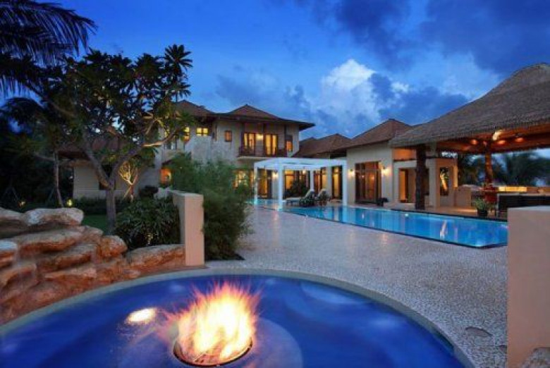 Дизайн этого экстравагантного особняка "Acqua Liana", расположенного на прибрежном участке площадью почти 6,5 м² во Флориде, разработан Франком МакКинни (Frank McKinney). Здесь есть водопады, лагуны, барная стойка в бассейне, "водные" стены и полы и другие оригинальные элементы интерьера. В доме 7 спален, 11 ванных комнат, также есть гостевой домик с двумя спальнями и двумя ванными комнатами. Общая жилая площадь особняка "Acqua Liana" составляет 1400 м².