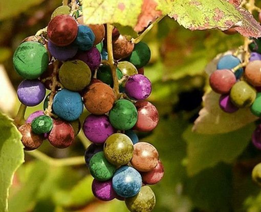 Эта фотография, конечно же, не настоящая, тем не менее, радужный виноград существует на самом деле. Этот сорт получают путём искусственного метода, известного как Veraison. В результате получаются гроздья винограда с разноцветными ягодами, хотя и не такими яркими, как на изображении.