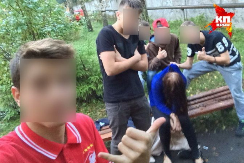 Как добавила одна из знакомых девушки, издевательства продолжались всю ночь. Утром девушку одели и вытащили во двор. Здесь ее босую посадили на скамейку и продолжили фотографировать.