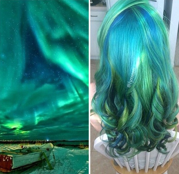 В поисках новых идей окрашивания волос парикмахеры и колористы обратили свой взор в небо. Вдохновившись красочными галактиками, вселенными, полярными сияниями и природными явлениями, они стали придумали новый тренд, который захватил западную молодёжь: