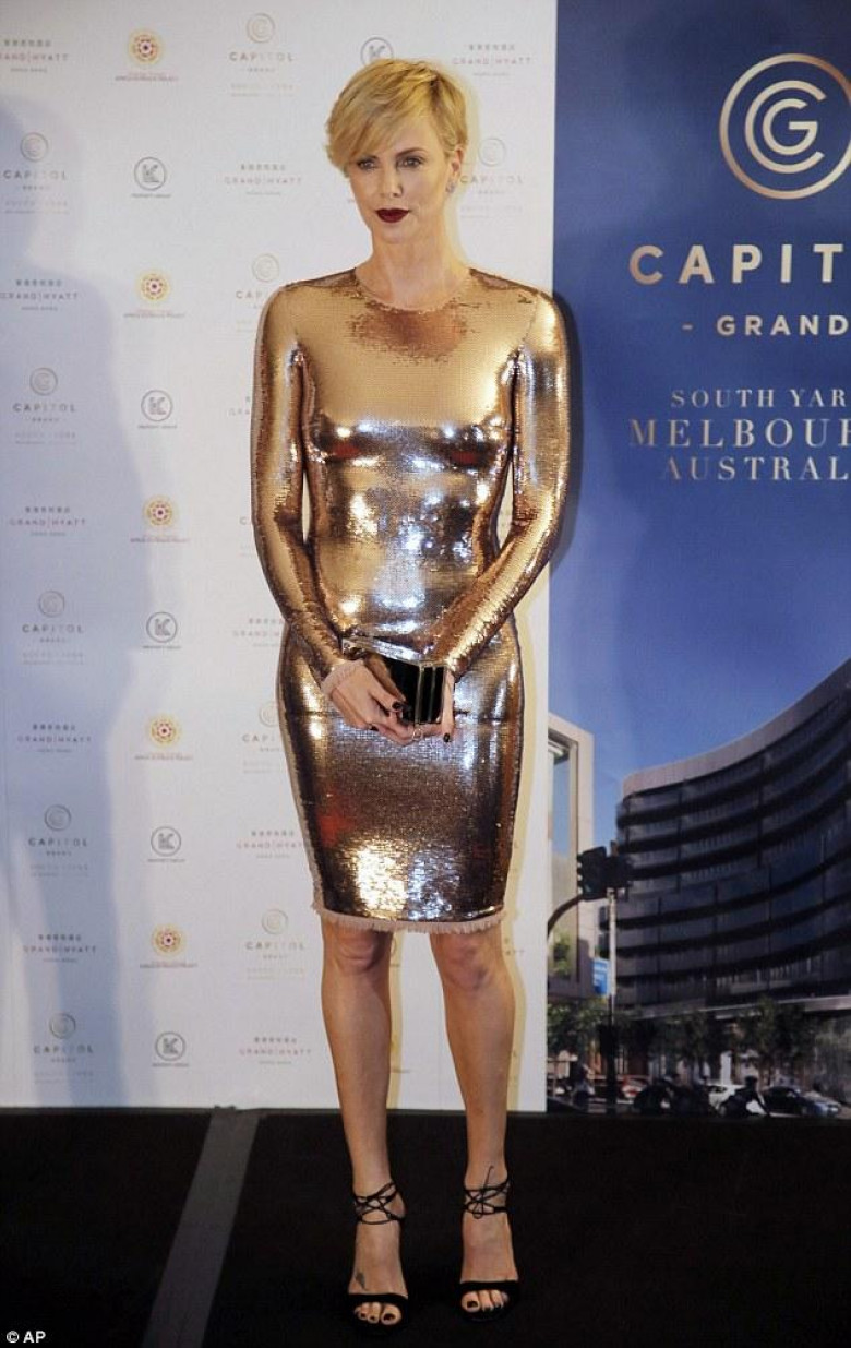 40-летняя актриса выбрала для мероприятия очень интересное платье, которое переливалось как золото на Шарлиз, так что сложно было оторвать от нее глаз.
