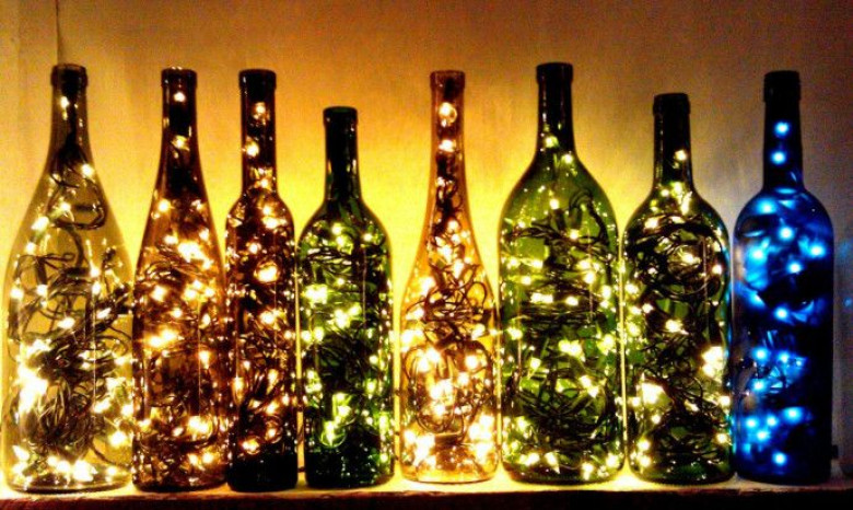 Невероятное по красоте украшение получится из пустой бутылки, наполненной гирляндами.