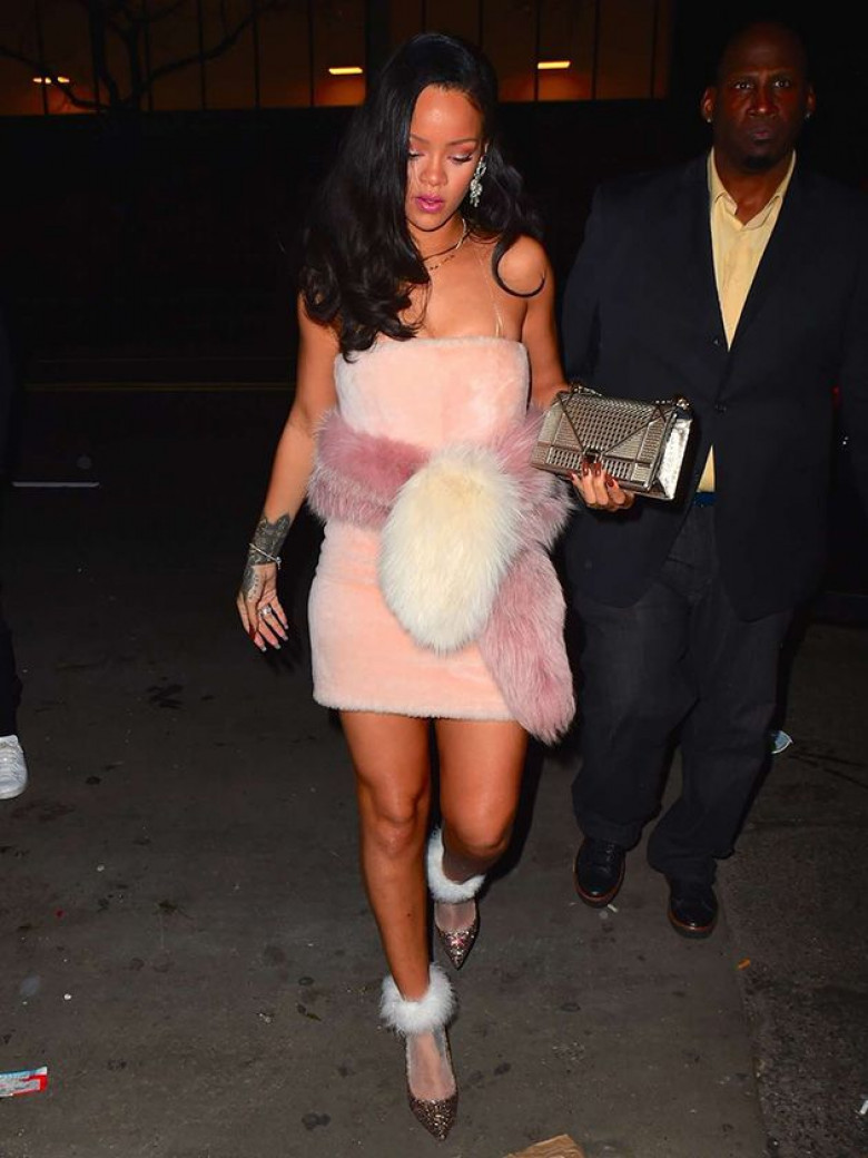 Выражение «ходить в мехах» Рианна понимает по‑своему: раз уж носить мех, так одеваться в него с ног до головы. Для максимально гротескного образа певице не хватает меховых сандалий и енотовой шапки американского бойскаута.