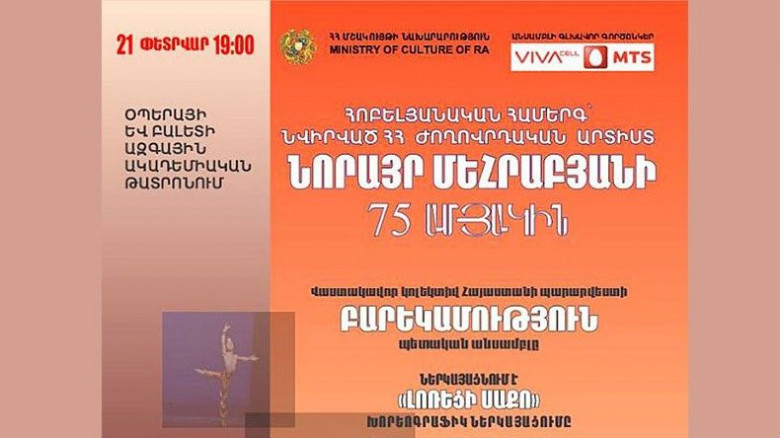 КультураВ Национальном академическом театре оперы и балета имени А. Спендиаряна 21 февраля в 19:00 состоится концерт, посвященный 75-летнему юбилею народного артиста РА, художественного руководителя государственного ансамбля танца «Барекамутюн» (Дружба) Норайра Меграбяна. Об этом сообщает пресс-служба министерства культуры РА.