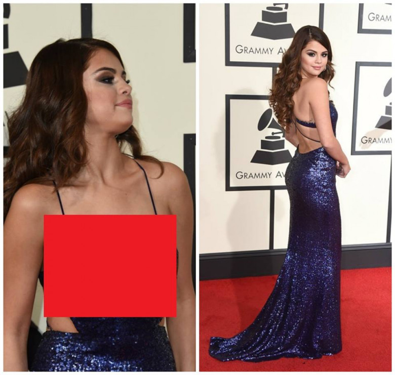 На 2016 Grammy Awards Селена Гомес появилась в шикарном длинном синем платье с очень откровенным вырезом.
