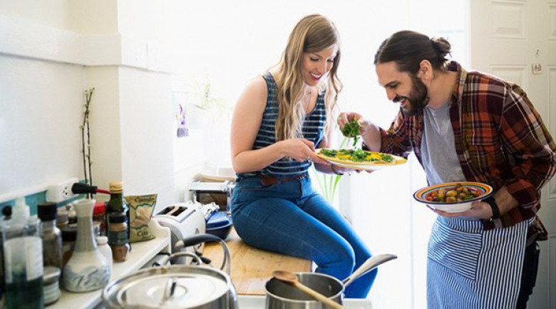 Безопаснее всего вводить новые привычки и блюда постепенно. Запеченное вместо жареного, сэндвич с индейкой вместо бутерброда с колбасой, чуть больше овощей в супе (идеально подходят супы-пюре — там можно спрятать все, от тыквы до брюссельской капусты). И, конечно,начинать надо с себя, а не с намеков на отсутствие у кого-то кубиков на животе: «Решила правильно питаться, присоединишься, милый?» В этом случае основная нагрузка — от подбора нужных продуктов до составления меню — ляжет на тебя. Но, если честно, это же изначально твоя идея, значит, и воплощать придется самой.
