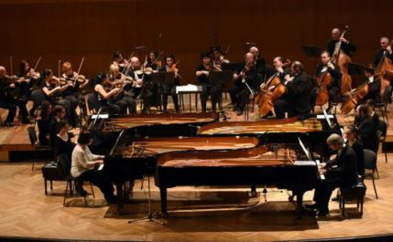 Вот где и оркестр, и пианисты показали, на что способны! Великолепная техника пианистов, их сыгранность (хотя наверняка репетиций было немного, и дело решало высокое исполнительское мастерство), прекрасное звучание и какой-то напор оркестра сразу создали чрезвычайно возвышенную атмосферу. Оставив неизменной партию оркестра, Бах внес в сольные партии специфические приемы, свойственные фортепиано (в оригинале это были клавесины). И, таким образом, вдохновенное и драматичное творение Вивальди в баховском переложении получило новый, уникальный по звучанию вариант.