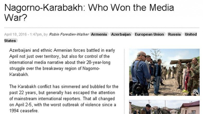 «EurasiaNet»: Пока Азербайджан жестко контролировал СМИ, иностранные журналисты через НКР получили свободный доступ к зоне конфликта