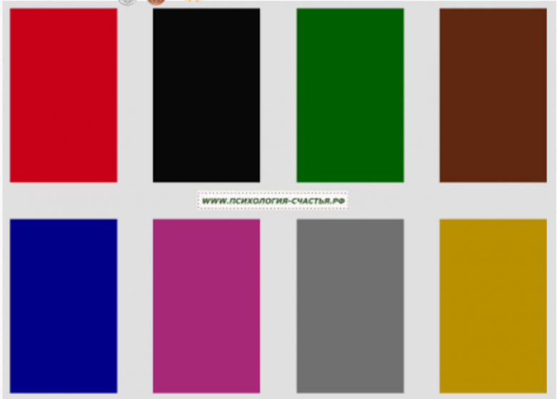 Первый цвет — тот, который Вам очень нравится в данный момент.Второй цвет — который меньше всего Вам по душе в данный момент тестирования.