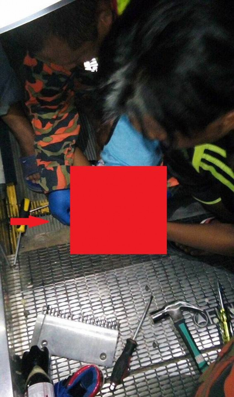 Освободить кричащего от боли ребенка удалось лишь через полчаса, основательно разобрав механизм эскалатора. Один из спасателей, Насир Вахаб, сообщил прессе:«По всей видимости, штаны мальчика зацепились еще в самом начале подъема, но он этого вовремя не заметил, а на вершине эскалатора не смог вовремя подняться, и его затянуло под гребенку».