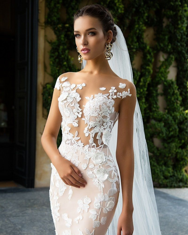 2. В свадебной моде 2017 года присутствует нотка сексуальности. Невестам предлагают надевать откровенные наряды из полупрозрачных тканей.