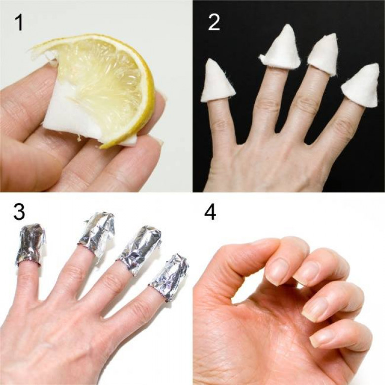 После темных лаков ногти часто желтеют. Чтобы отбелить их, пропитайте ватку лимонным соком и заверните в нее ноготь, после чего оберните фольгой. Подержите так 10–15 минут, а затем снимите.