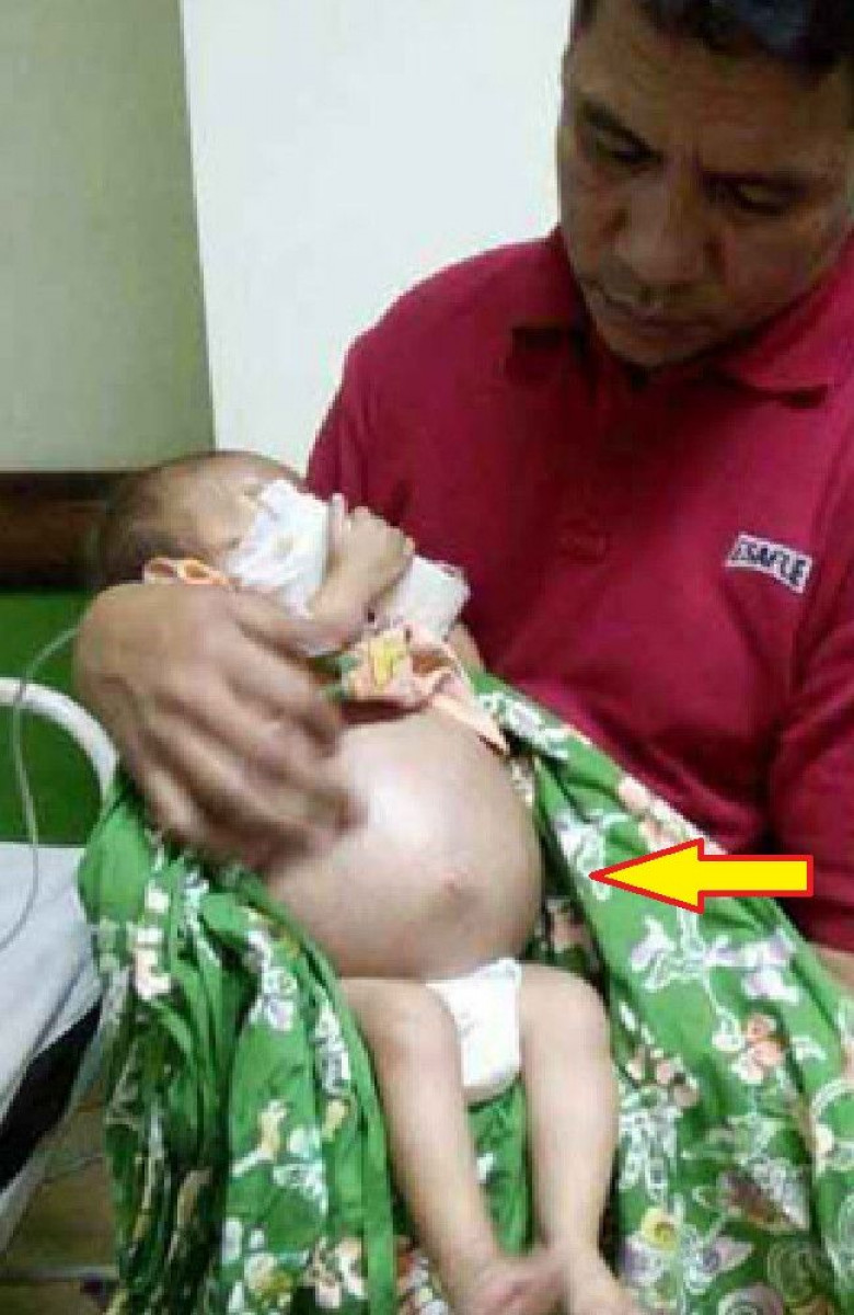 Родители привезли 10-месячного Мухаммада Хаким в больницу острова Ломбок, Индонезия, после того, как в начале марта его живот раздулся до внушительных размеров. В результате обследования выяснилось, что в желудке ребенка находится близнец-паразит Мухаммада. По словам врачей, ткани паразита уже мертвые, а вот кровеносные сосуды остаются живыми.