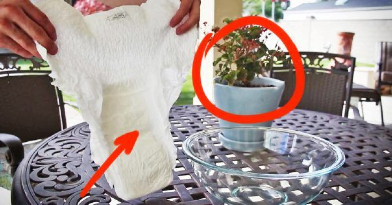 Многие даже не догадывались, что опытные садоводы нашли подгузники очень полезными в своем деле. Подгузники, уложенные на дно горшка или кашпо, прекрасно удерживают влагу. Так что теперь не стоит беспокоиться за любимые цветы, если ты редко бываешь на дачном участке.