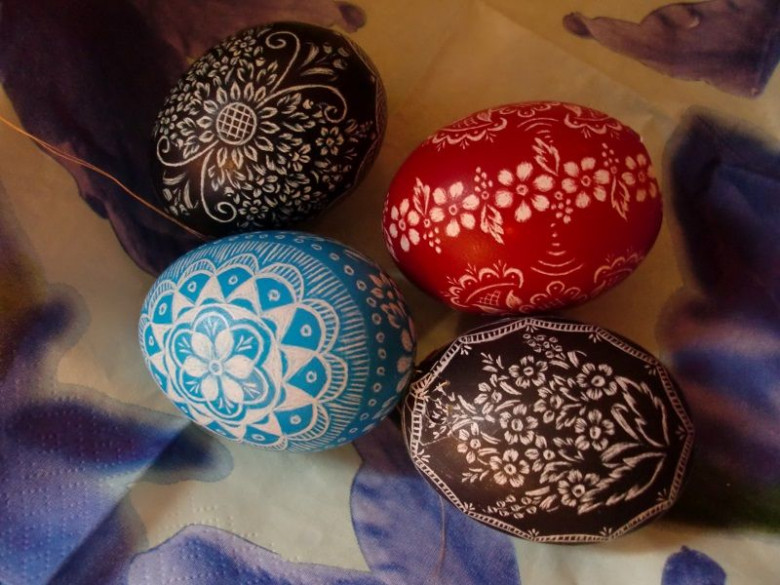 - Очень красивые узоры. Такие яйца даже бить жалко.