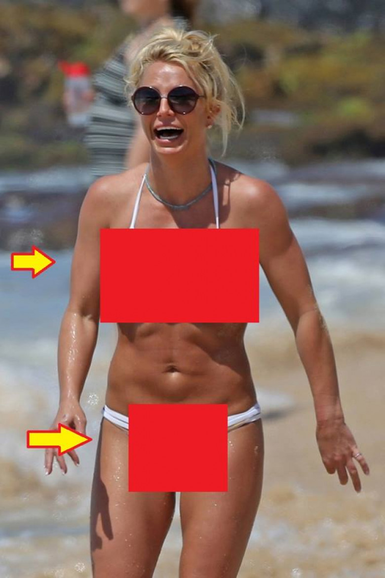 Бритни Спирс продолжает радовать поклонников подтянутой фигурой — знаменитость регулярно делится в социальных сетях своими снимками в купальниках и мини-шортах, хотя и не может отказаться от привычки использовать фотошоп. На днях папарацци удалось запечатлеть певицу, что называется, без прикрас. 11 апреля западные СМИ распространили фотографии Спирс, отдыхающей на гавайском пляже. В тот день певица выбрала откровенное полупрозрачное бикини от Beach Bunny. Белый цвет купальника подчеркнул бронзовый загар Бритни. Несмотря на довольно пикантные прорези на этой модели, ничего лишнего певица не показала — дизайнеры бренда позаботились о «безопасности» своих поклонниц, нашив на самые откровенные изделия телесные подкладки.
