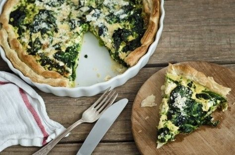 Как приготовить: 1 Яйца смешайте с размягченным сливочным маслом. Добавьте сметану и молоко, перемешайте. Соедините с мукой, разрыхлителем и солью. Вымесите тесто и поместите его в холодильник на 20-30 минут. 2 Займитесь начинкой. Шпинат вымойте и обсушите. Нарежьте листья соломкой. Смешайте шпинат со сливочным сыром, и натертым на крупной терке твердым сыром. Посолите и поперчите. 3 Тесто раскатайте и выложите в форму с высокими бортиками. Выложите на тесто шпинатно-сырную начинку и выпекайте в разогретой до 180 градусов С духовке 35-40 минут.
