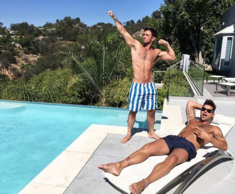 Они вместе отдыхают с двойняшками певца — 8-летними Матео и Валентино, которых ему родила суррогатная мать.