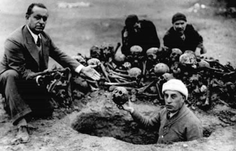 Գերմանացի և թուրք զինվորները հայ զոհերի գանգերը լուսանկարելիս
